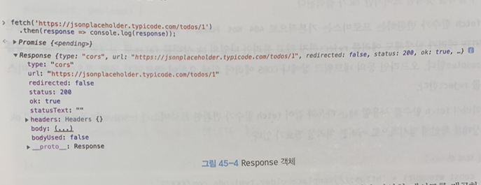 ๋ฐ๋ผ์ ํ์ ์ฒ๋ฆฌ ๋ฉ์๋ then์ ํตํด ํ๋ก๋ฏธ์ค๊ฐ resolveํ Response ๊ฐ์ฒด๋ฅผ ์ ๋ฌ๋ฐ์ ์ ์์ผ๋ฉฐ Response๊ฐ์ฒด๋ HTTP ์๋ต์ ๋ํ๋ด๋ ๋ค์ํ ํ๋กํผํฐ๋ฅผ ์ ๊ณตํฉ๋๋ค.