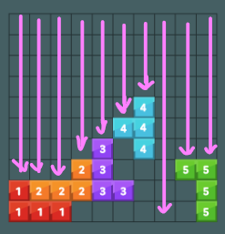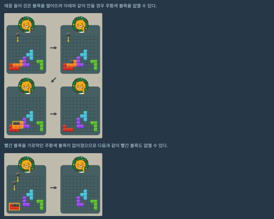 - ์ด๋, ๊ฐ ์ด๋ง๋ค 0~board.length-1๊น์ง ๋ธ๋ก์ด ์๋ ๊ณณ๊น์ง ์๋์ ๊ฐ์ด ๊ฐฑ์ ํฉ๋๋ค.