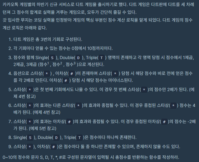 ๋ฌธ์ ์ ํต์ฌ์ ์ ๊ท์์ ํ์ฉํด S,D,T,*,#์ ๊ฐ์ ์ฐ์ฐ์์, ์ซ์๋ฅผ ๋ถ๋ฆฌํ๋ ๊ฒ์ ๋๋ค.