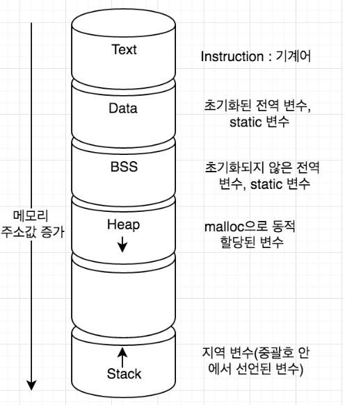 - Code, Data, Stack, Heapμ κ΅¬μ‘°λ‘ λμ΄ μλ λ 립λ λ©λͺ¨λ¦¬ μμ