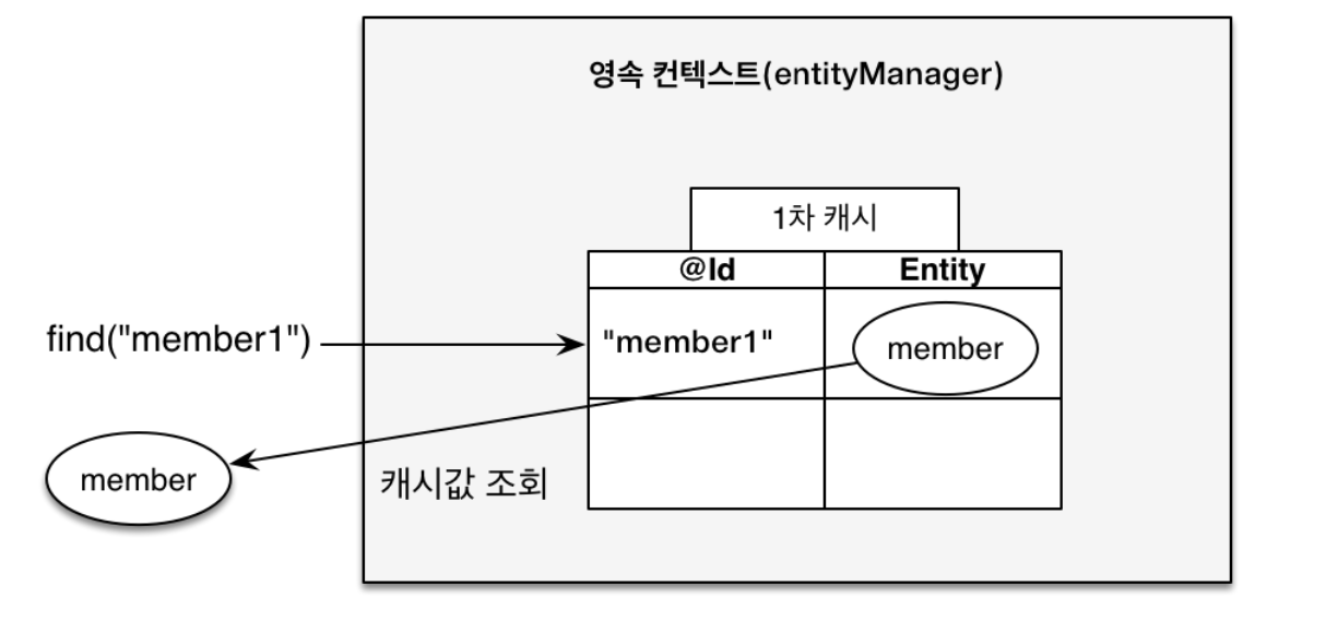 - persist()๋ฅผ ํตํด ์์์ฑ ์ปจํ ์คํธ์ ์ ์ฅ๋ ๊ฐ์ฒด๋ฅผ ๋ค์ ์กฐํํ๋ฉด DB๊ฐ ์๋ ์ปจํ ์คํธ์์ ์กฐํ