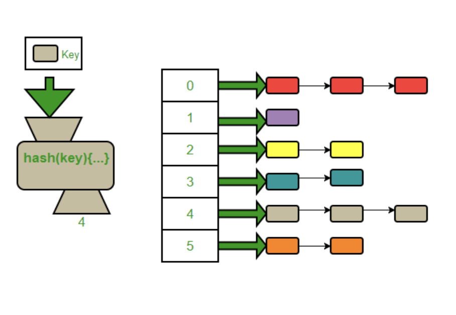 - Key์ ๋ํ index๊ฐ ๊ฐ๋ฅดํค๋ ์๋ฃ๊ตฌ์กฐ๋ฅผ LinkedList๋ฅผ ์ด์ฉํ๋ ๋ฐฉ์