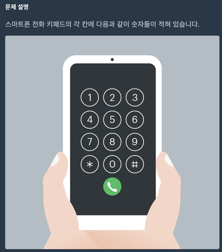 - Map<Integer, KeyPad> map์ ํคํจ๋์ ๋ชจ์๋๋ก ์ซ์๋ค์ ์์น (x,y)๋ฅผ ์ ์ฅํฉ๋๋ค.