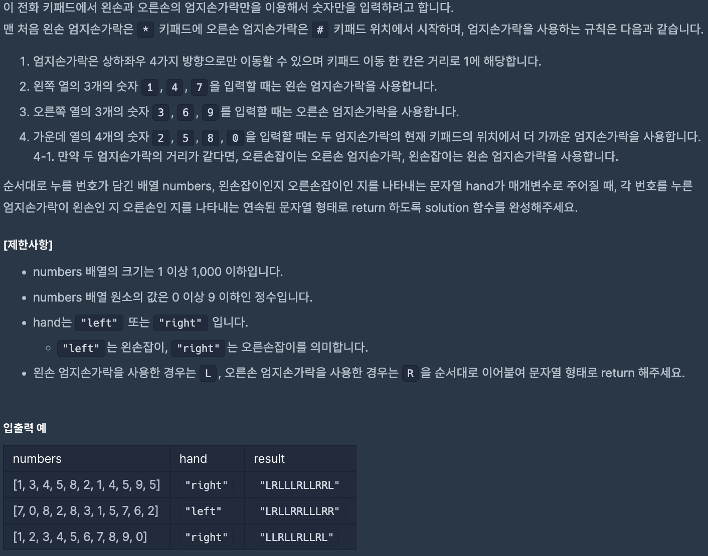 public String solution(int[] numbers, String hand) {