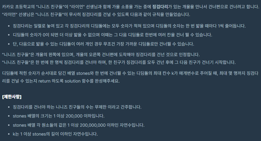 [Java] ํ๋ก๊ทธ๋๋จธ์ค - ์ง๊ฒ๋ค๋ฆฌ ๊ฑด๋๊ธฐ