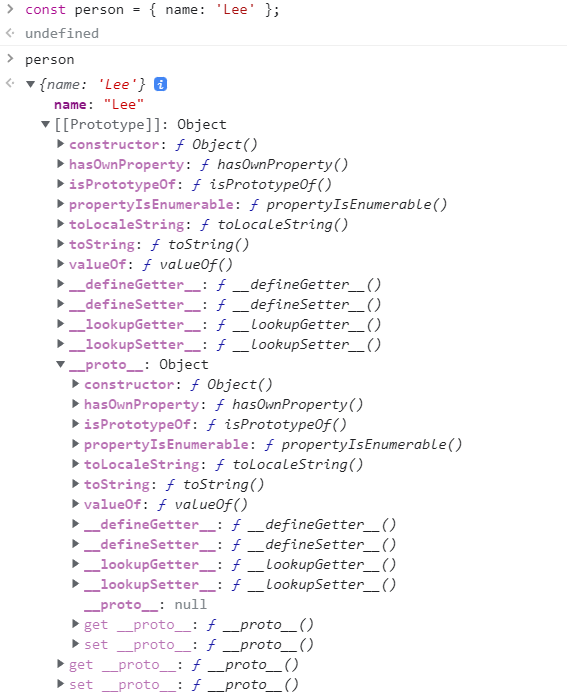 ์์ ์์ ์ ๊ฐ์ด person ๊ฐ์ฒด์ ํ๋กํ ํ์ ์ด ๊ตฌ์ฑ๋์ด ์๋ ๊ฒ์ ํ์ธํ ์ ์์ต๋๋ค.