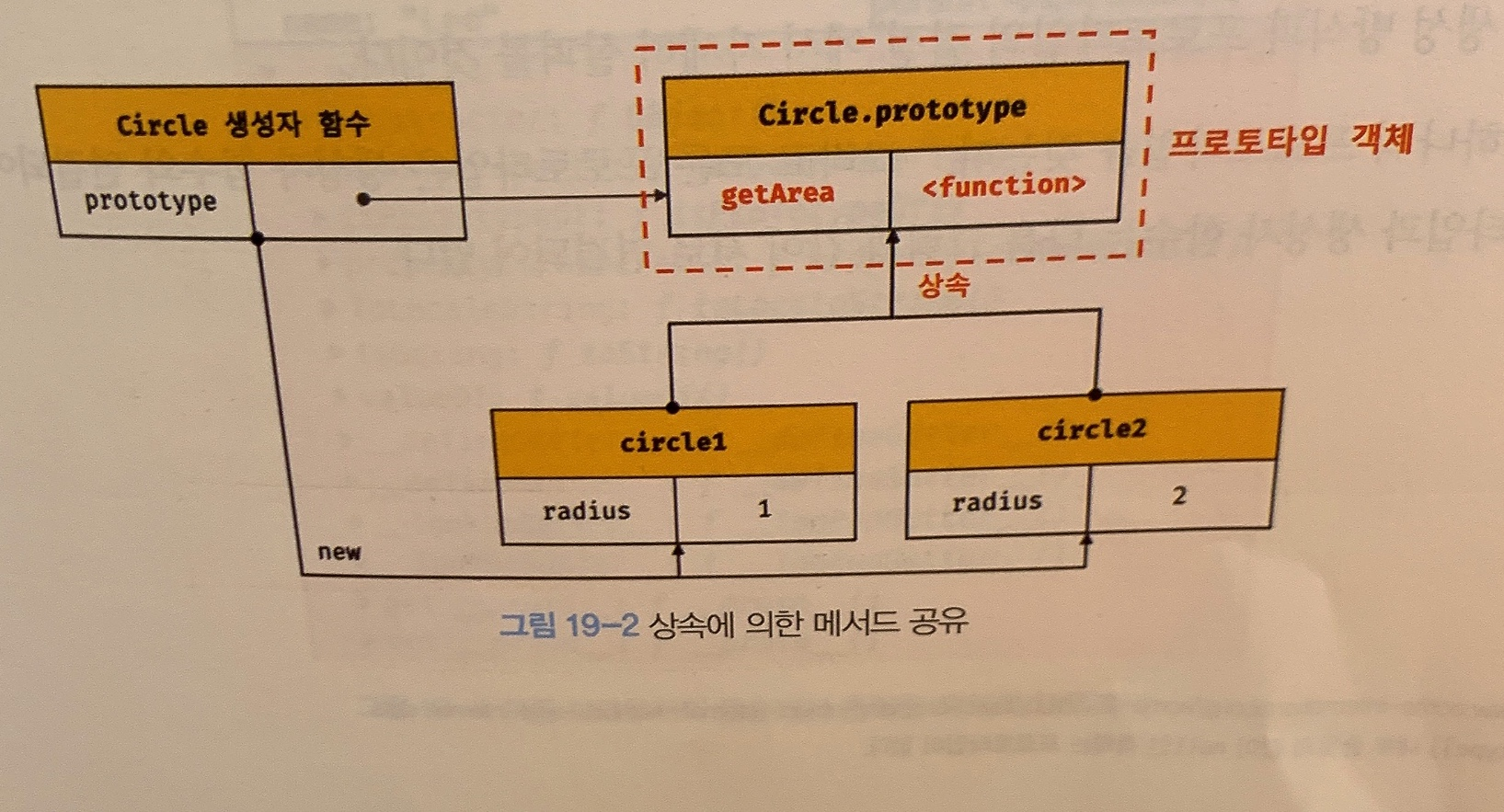 // ์ฆ, Circle ์์ฑ์ ํจ์๊ฐ ์์ฑํ๋ ๋ชจ๋ ์ธ์คํด์ค๋ ํ๋์ getArea ๋ฉ์๋๋ฅผ ๊ณต์ ํจ