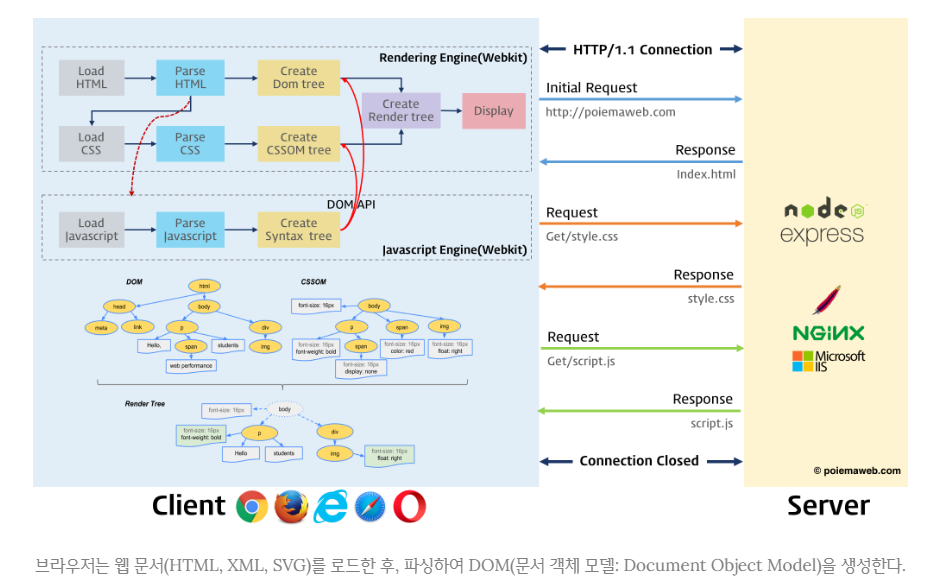 ๋ธ๋ผ์ฐ์ ๊ฐ ๋ ๋๋ง๋๋ ๊ณผ์ ์ ๋ค์๊ณผ ๊ฐ์ต๋๋ค.