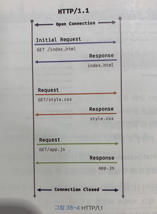 - HTML ๋ฌธ์ ๋ด์ ํฌํจ๋ ์ฌ๋ฌ ๊ฐ์ ๋ฆฌ์์ค ์์ฒญ๊ณผ ์๋ต์ด ๊ฐ๋ณ์ ์ผ๋ก ์ ์ก๋จ